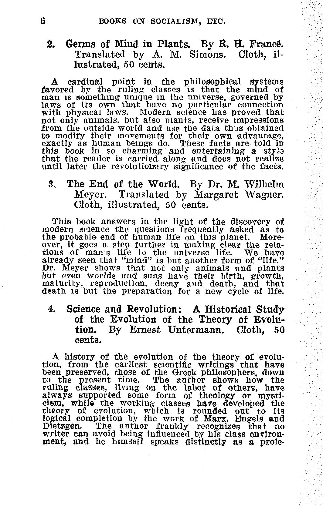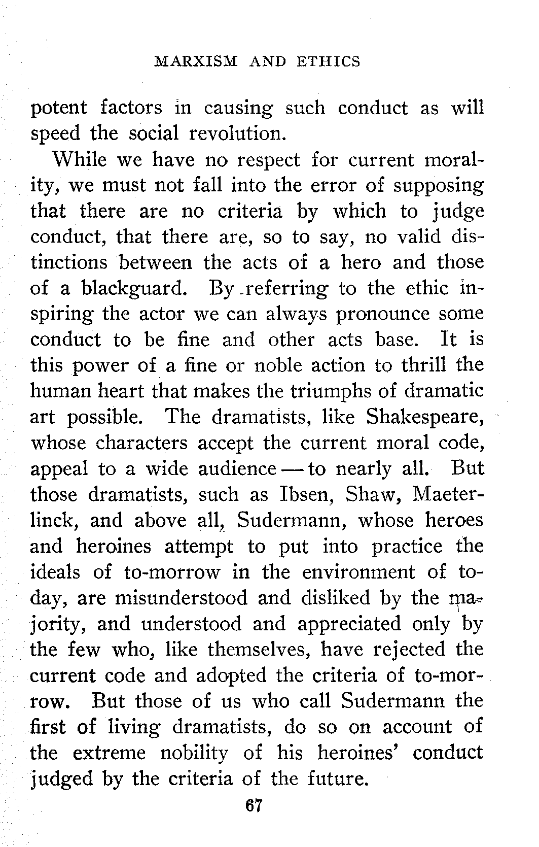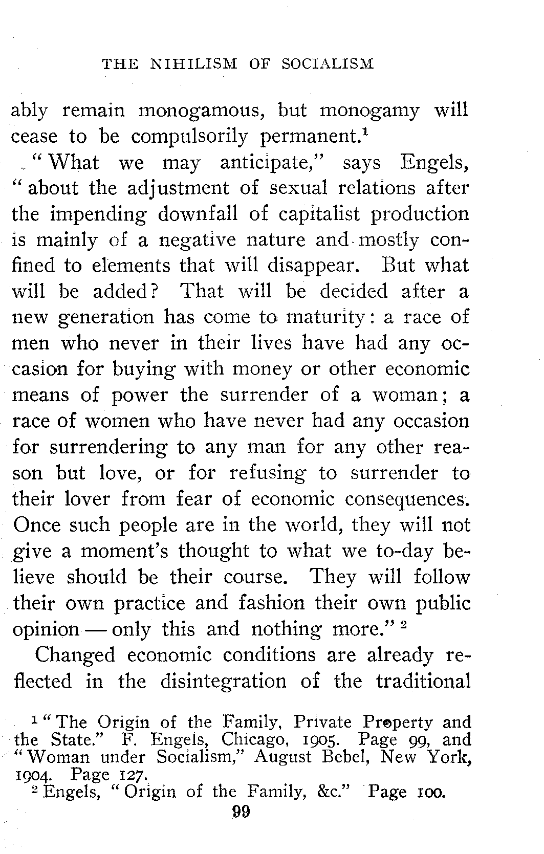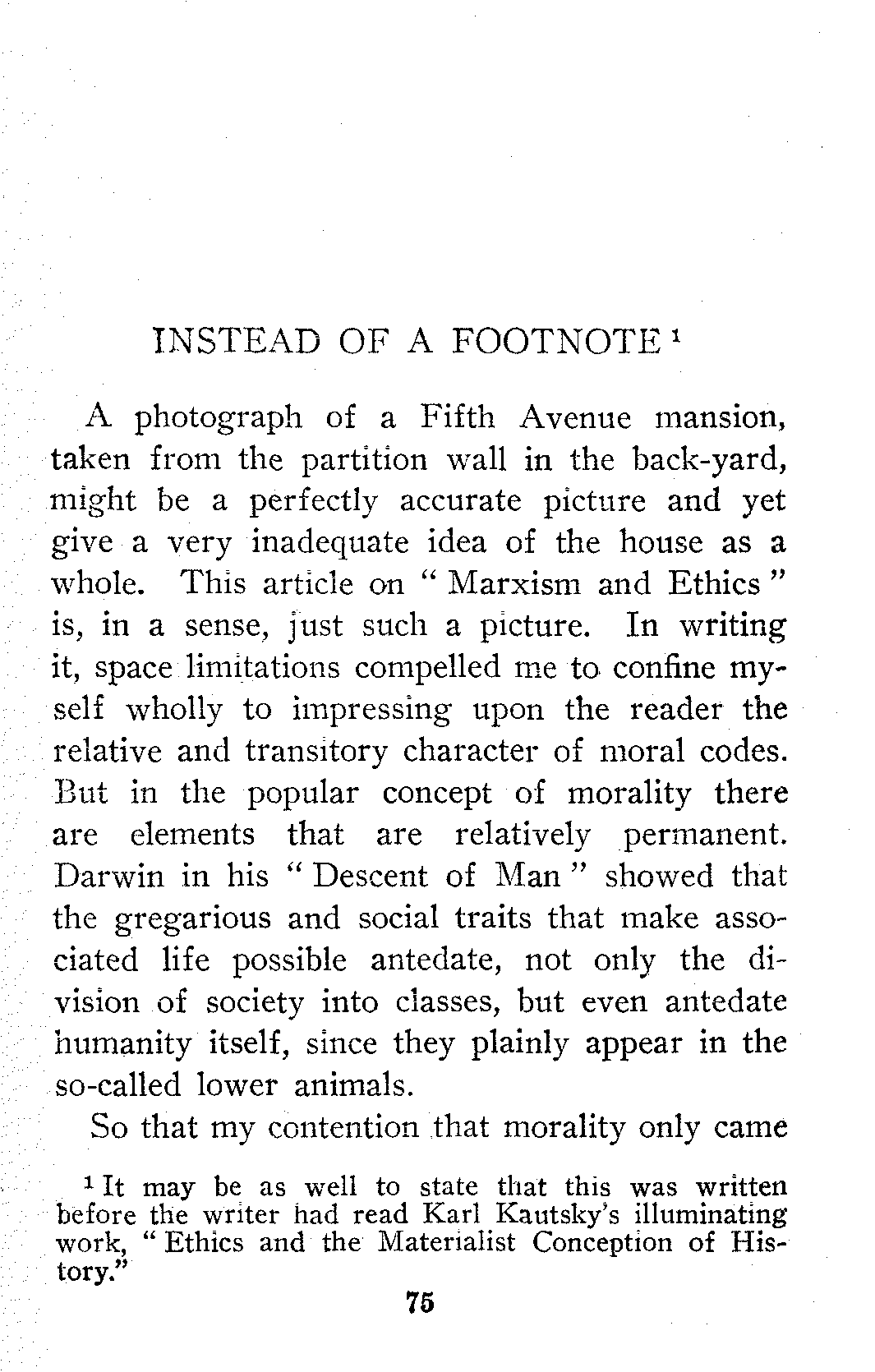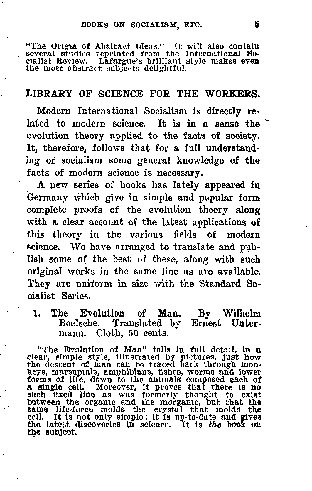 The general acceptance of the idea that all things change, that property, marriage, religion, etc., are in process of evolution and are destined to take on new forms prepared the way for Socialism. A man who has read Wallace and Darwin is ready to read Marx and Engels.