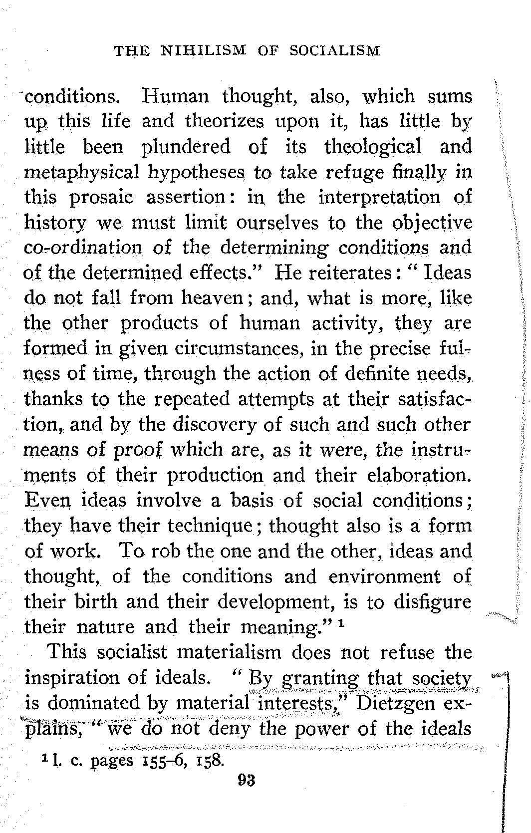 Before natural science had thus revolutionized the intellectual atmosphere, great men proclaiming the doctrines of modern socialism might have been rained down from Heaven, but there would have been no socialist movement. In fact many of its ideas had found utterance centuries before, but the economic conditions, and consequently the intellectual conditions were not ripe, and these ideas were still-born, or died in infancy.