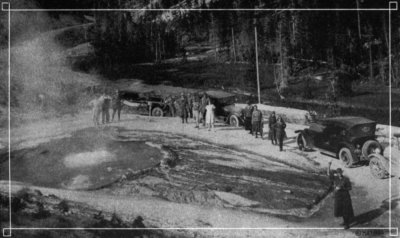 Ninety thousand replicas of Maw cause the rest of us to eat copiously of alkaline dust and to shiver each time we approach a turn on the roads of Yellowstone Park, which were laid out on a curling iron. You cannot escape seeing Paw and Maw, and Cynthy in her pants, and Hattie and Roweny in overalls and putties. I have seen their camp fire rising on every remaining spot of grass on all that busy fifty miles. I have photographed Maw and Cynthy and the other girls, and Cynthy has photographed me because I looked funny. Bless them all, the whole ninety thousand of them—I would not have missed them on their vacation this summer for all the world. They are, I suppose, what we call the new people of[6] America, who never have been out like this before. They've been at home. Maw has been getting the Sunday dinner. Paw has been plowing, paying the taxes which this Government has spent for him. But now Paw pays income tax also; and both he and Maw construe this fact to mean that they can at last read their title clear to a rest, and a car, and a vacation. So they have swung out from the lane at last, after forty years of work, and on to the roads that lead to the transcontinental highway. They have crossed the prairies and come up into the foothills—the price of gas increasing day by day, and Paw kicking but paying cash—and so they have at last arrived among the great mountains of which Maw has dreamed all her long life of cooking and washing and ironing.