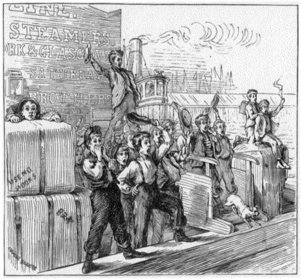 The family, consisting of his father, mother, sister, and himself, had come from Chicago for the purpose of sailing [Pg 10] in a steamer—which one he was unable to say—for Europe. They went directly from the cars to the pier, and had gone on board the huge vessel which was to be their home while crossing the Atlantic. After they had been there some time, and he could see no evidences that the steamer was about to start, he had asked his mother’s permission to go on deck for the purpose of making the acquaintance of a boy about his own age, whom he had seen when they first came on board. The attempt at making the acquaintance was so successful that in five minutes they were firm friends, and in as many more had laid all kinds of plans for future enjoyment.