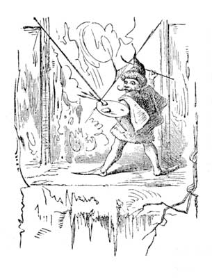 Now, when every thing was so quiet, she began slowly to raise her eyelids a little, until she had her eyes wide open and was staring about her. She seemed to be looking through green glass, and could not see very distinctly, but every once in a while[Pg 22] some dim fish would move beside her; and as her eyes got more used to the place, all things became clearer, and soon she saw that on both sides of her and behind, there was a multitude of fishes of all sizes. They swam beside her, the older and bigger ones moving very sedately, and keeping the same order; but the little frisky fishes would tumble around in great glee, and come darting up to Effie, putting their cold noses up to her face and then go racing back, giggling and whipping their tails about in a fine frolic; and the awkward, bungling, good-natured dolphins, would come tumbling in among the steady fishes and make the greatest commotion, almost upsetting little Effie two or three times, and then go bouncing off, shaking their fat sides with laughter. There was an old sword-fish, that seemed to be a kind of special constable, who kept going round and round, pricking the dolphins whenever he got a chance and frightening the little fishes almost out of their senses; as often as he made his appearance, with that long sword of his sticking out, such a scampering as there would be! and how the wee fishes would[Pg 23] try to hide behind the dolphins, and how the dolphins would slap them with their fins, and go rolling in among the steady fishes, as if they were the most quiet, well-disposed, respectable fishes that ever were. Oh! how they frolicked and tumbled about the little sea-green man with Effie on his back! Effie shouted and clapped her hands in great glee, and tried to hop up and down on the little man's hump, but she was so tied down that she couldn't, so she kept digging her toes into his back, and twitching the bobs of the seal-skin cap, till he got going at a terrible pace, so fast that it was as much as the fishes and dolphins could do to keep up with him, without playing by the way!