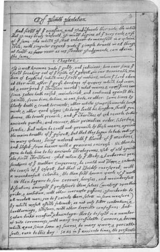 Calling at Major John Bradford's at Kingston near Plimouth, son of Major Wm. Bradford formerly Dep Gov'r of Plimouth Colony, who was eldest son of Wm. Bradford Esq their 2nd Gov'r, & author of this History; ye sd Major John Bradford gave me several manuscript octavoes wh he assured me were written with his said Grandfather Gov'r Bradford's own hand. He also gave me a little Pencil Book wrote with a Blew lead Pencil by his sd Father ye Dep Gov'r. And He also told me yt He had lent & only lent his sd Grandfather Gov'r Bradford's History of Plimouth Colony wrote by his own Hand also, to judg Sewall; and desired me to get it of Him or find it out, & take out of it what I thought proper for my New-England Chronology: wh I accordingly obtained, and This is ye sd History: wh I found wrote in ye same Handwriting as ye Octavo manuscripts above sd.