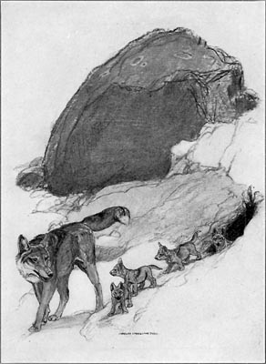 His curiosity satisfied, Breed answered her invitations less often and she saw him only at infrequent intervals; and there was a reason for this flagging interest. Wolves and coyotes mate for life, or till one or the other of a pair falls victim to the wiles of man. When once a pair is broken the survivor will not take unto himself another mate till the next running time of wolves. There were pairs of coyotes running together in Breed's pack; there were40 also single she-coyotes and single dogs, but while the mated ones were as devoted as ever before, these single ones had only a general interest in the others, their attitude uninfluenced by the lure of sex. And Shady, hampered by her relations with man and so unable to follow Breed's leadership at will, exercised less influence over him than either Peg or Cripp.
