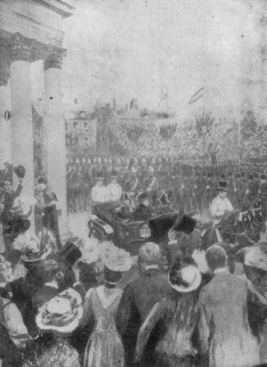 The chief factor in this development was the late Queen Victoria, and to the inheritance of the fabric thus evolved came a son who was educated amid the constitutional environment in which she lived and was trained in the Imperial ideas which she so strongly held and so wisely impressed upon her statesmen, her family and her people. King Edward came into responsibilities which were greater and more imposing than those ever before inherited by a reigning sovereign. He[Pg 18] had not only the great example and life of his predecessor as a model and as a comparison; not only the same vast and ever-changing and expanding Empire to rule over; not only a similar myriad-eyed press and public to watch his every expression and movement; but he entered with his people upon a new century in which one of the first and most prominent features is a decay in popular respect for Parliament and a revival of the old-time love for stately display, for ceremonial and for the appropriate trappings of royalty. With this evident and growing influence of the Crown as a social and popular factor is the knowledge which all statesmen and constitutional students now possess of the personal influence in diplomacy and statecraft which was wielded by the late Queen Victoria and which the experience and tact of the new Monarch enabled him to also test and prove. Side by side with these two elements in the situation was the conviction which has now become fixed throughout the Empire that the Crown is the pivot upon which its unity and future co-operation naturally and properly turns; that the Sovereign is the one possible central figure of allegiance for all its scattered countries and world-wide races; that without the Crown as the symbol of union and the King as the living object of allegiance and personal sentiment the British realms would be a series of separated units.