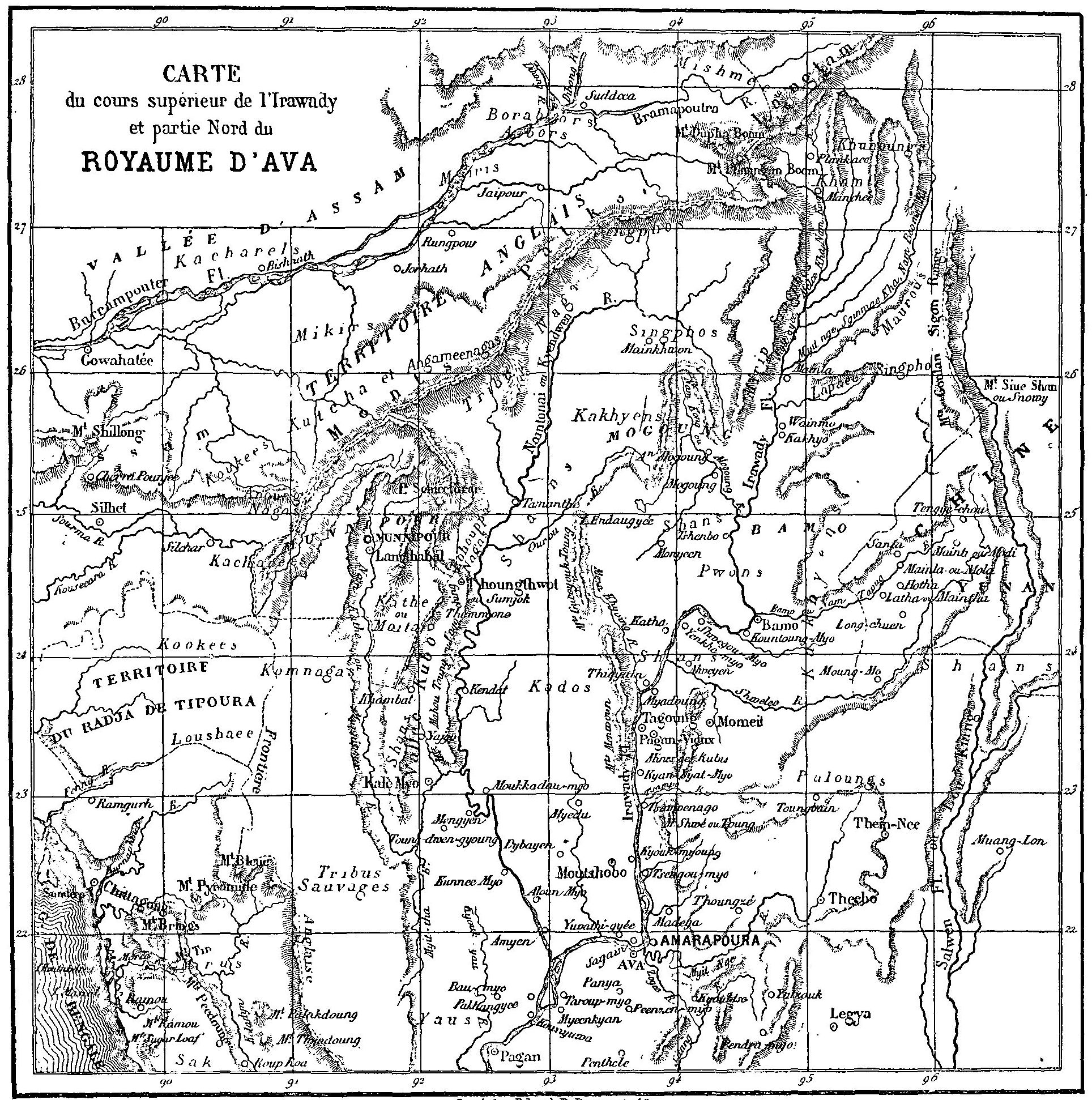 Lord Dalhousie, gouverneur général de l'Inde, ayant décidé l'envoi d'une ambassade près de la cour d'Ava, les membres de la mission, à laquelle il voulut bien m'adjoindre en qualité de secrétaire, se réunirent à Rangoun dans le courant de juillet 1855. Cette ville est célèbre par sa belle position commerciale et maritime au débouché de la navigation intérieure du Pégu et de l'Ava, ainsi que par sa grande pagode, un des sanctuaires les plus renommés de l'Indo-Chine.