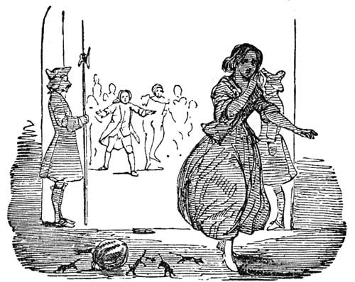 The long-wished-for evening came at last, and off they set. Cinderella's eyes followed them as long as she could, and then she was fain to weep. Her godmother now appeared, and seeing her in tears inquired what was the matter. “I wish—-I wish,” began the poor girl, but tears choked her utterance. “You wish that you could go to the ball,” interrupted her godmother, who was a fairy. “Indeed I do!” said Cinderella, with a sigh. “Well, then, if you will be a[Pg 7] good girl, you shall go,” said her godmother. “Now fetch me a pumpkin from the garden,” added she. Cinderella flew to gather the finest pumpkin she could find, though she could not understand how it was to help her to go to the ball. But, her godmother having scooped it quite hollow, touched it with her wand, when it was immediately changed into a gilt coach. She then went to the mousetrap, where she found six live mice, and bidding Cinderella let them out one by one, she changed each mouse into a fine dapple-grey[Pg 8] horse by a stroke of her wand. She next considered what she should do for a coachman, when Cinderella proposed to look for a rat in the rat-trap. “That's a good thought,” quoth her godmother, “so go and see.” Sure enough, Cinderella returned with the rat-trap, in which were three large rats. The fairy chose one who had a tremendous pair of whiskers, and forthwith changed him into a coachman with the finest moustachios ever seen. She then said: “Now go into the garden, and bring me six lizards, which you will find behind the watering-pot.” These were no sooner brought, than they were turned into six footmen, with laced liveries, who got up behind the coach just as naturally as if they had done nothing else all their lives. The fairy then said to Cinderella: “Now here are all the means for going to the ball; are you not pleased?” “But must I go in these dirty clothes?” said Cinderella, timidly. Her godmother merely touched her with her wand, and her shabby clothes were changed to a dress of gold and silver tissue, all ornamented with precious stones. She next gave her the prettiest pair of glass slippers ever seen. She now got into the carriage, after having been warned by her[Pg 9] godmother upon no account to prolong her stay beyond midnight, as, should she remain a moment longer at the ball, her coach would again become a pumpkin, her horses mice, her footmen lizards, while her clothes would return to their former shabby condition. Cinderella promised she would not fail to leave the ball before midnight, and set off in an ecstacy of delight. The king's son, on being informed that some great princess, unknown at court, had just arrived, went to hand her out of her carriage, and brought her into the hall where the company was as[Pg 10]sembled. The moment she appeared, all conversation was hushed, the violins ceased playing, and the dancing stopped short, so great was the sensation produced by the stranger's beauty. A confused murmur of admiration fluttered through the crowd, and each was fain to exclaim “How surpassingly lovely she is!” Even the king, old as he was, could not forbear admiring her like the rest, and whispered to the queen, that she was certainly the fairest and comeliest woman he had seen for many a long day. The ladies were all busy examining her head-dress and her clothes, in order to get similar ones the very next day, if, indeed, they could meet with stuffs of such rich patterns, and find workwomen clever enough to make them up.