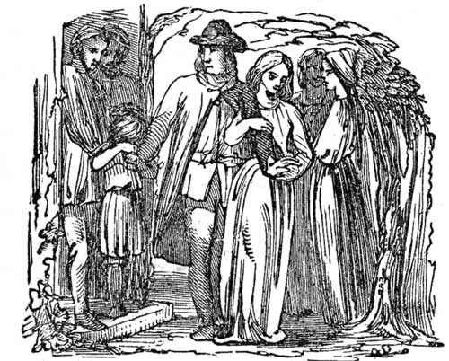 This terrible sentence fell like a damp upon all the company, and there was no one present but what shed tears. But just then the young fairy came out from behind the tapestry-hangings, and said aloud: “Be comforted, O king and queen: your daughter shall not die[Pg 70] of the wound. For although I have not the power to undo completely the mischief worked by an older fairy, and though I cannot prevent the princess from pricking her hand with a spindle, yet, instead of dying, she shall only fall into a sleep, that will last a hundred years, at the end of which a king's son will come and wake her.”