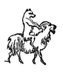Meanwhile the wicked nurse had reached the shore, where she and her daughter found a hundred carriages waiting for them, drawn by a variety of animals, such as lions, stags, bears, wolves, horses, oxen, eagles, and peacocks. The coach intended for Princess Rosetta was drawn by six blue monkeys, caparisoned with crimson velvet. The nurse had drest up her daughter in the finest gown she could find, and loaded her head with diamonds; in spite of which, she appeared so frightful, with her squinting eyes, oily black hair, crooked legs, and humped shoulder, that the persons[Pg 43] sent by the king of the peacocks to receive her, were struck with amazement at the sight of her. Being as cross as she was ill-favoured, she asked them tartly whether they were all asleep, and why they did not bring her something to eat; and then, distributing her blows pretty freely, she threatened to have them all hung if they did not shew a little more alacrity in doing her bidding. As she passed along in state, the peacocks perched on the trees cried out, “Fie! what[Pg 44] an ugly creature!” which enraged her so that she ordered her guards to go and kill all the peacocks; but they flew away and only laughed at her the more. When the pilot heard and saw all this, he whispered to the nurse: “We are in the wrong box, mistress;” but she bid him hold his peace.