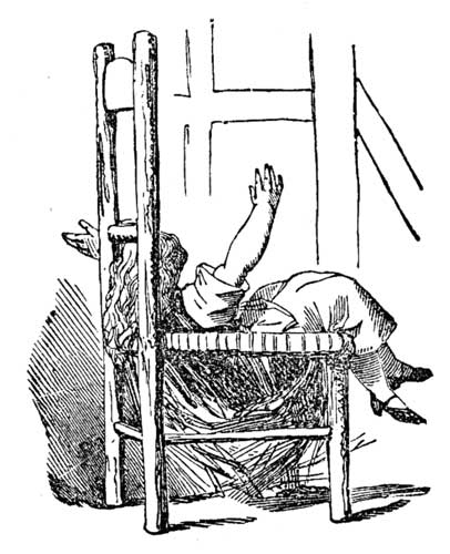 The good old woman becoming alarmed, called[Pg 72] aloud for help, and a number of attendants flocked round the princess, bathed her temples with water, unlaced her stays, and rubbed the palms of her hands, but all to no purpose. The king, who had come up stairs on hearing the noise they made, now recollected what the fairies had foretold, and seeing there was no help for it, ordered the princess to be laid on a bed, embroidered in gold and silver, in the most magnificent room in the palace. She looked as lovely as an angel, while thus lying in state, though not dead, for the roses of her complexion and the coral of her lips[Pg 73] were unimpaired; and though her eyes remained closed, her gentle breathing showed she was only slumbering. The king ordered her to be left quite quiet, until the time should come when she was to awake. The good fairy who had saved her life, by condemning her to sleep for a hundred years, was in the kingdom of Mataquin, some twelve thousand miles off, when the accident occurred; but, having quickly heard the news through a little dwarf, who possessed a pair of seven-league boots, she lost no time in coming to see her royal friends, and presently arrived at the palace in a fiery chariot drawn by dragons. The king went to hand her out of the carriage. She approved of all he had done; but, being extremely prudent, she foresaw that when the princess would come to wake she would be puzzled what to do on finding herself all alone in a large palace, and therefore adopted the following expedient. She touched with her wand all the ladies in waiting, maids of honour, ladies' maids, gentlemen, officers, stewards, cooks, scullions, running footmen, guards, porters, pages, valets, in short, every human being in the palace, except their two majes[Pg 74]ties; she next went into the stables, and touched all the horses, with their grooms, the large dogs in the court-yard, and, lastly, the princess's little lapdog, that lay beside her on the bed. No sooner had she done so, than one and all fell into a sound sleep that was to last till their mistress should wake, in order to be ready to attend her the moment she would require their services. Even the spits before the fire, that were roasting some savoury partridges and pheasants, seemed in a manner to fall asleep, as well as the fire itself. And all this was but the work of a moment, fairies being never very long doing their spiriting.