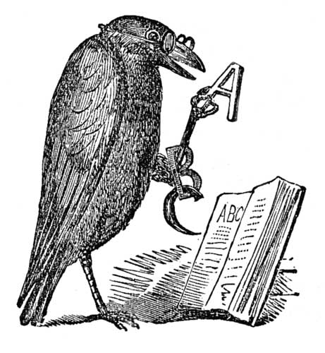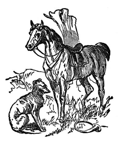 As he approached Galifron's castle, he found the road strewed with the bones and carcases of those whom he had devoured or torn to pieces; and presently the giant emerged from a wood, when, seeing Avenant with his sword drawn, he ran at him with his iron club, and would have killed him on the spot, had not a crow come and pecked at his eyes, and made the blood stream down his face; so that, while he aimed his blows at random, Avenant plunged his sword up to the hilt into his heart. Avenant then cut off his head, and the crow perched on a tree, saying: “I have not forgotten how you saved my life by killing the eagle. I promised to do you a good turn, and I have kept my word.” “In truth I am greatly beholden to you, master crow,[Pg 92]” quoth Avenant, as he mounted his horse, and rode off with Galifron's head.