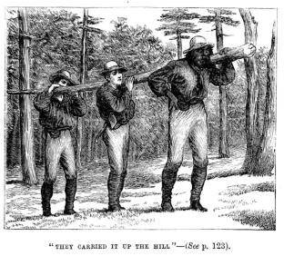 “Here, lend a hand and help us, you fellows!” said Paul to his cousins, as he and Harry went to assist their father and Mr Berrington, who, with their tutor and Sandy, were engaged in unloading the drays.