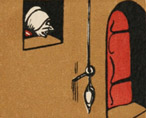 Während des kriegerischen Tumults hielt sich Fräulein Mathilde im Dachstübchen ganz ruhig und hatte die Tür verschlossen. Als sie aber merkte, daß draußen alles bunt über ging und Schloß und Riegel ihr keine [21]Sicherheit weiter geben würde, warf sie ihren Schleier über, drehte den Bisamapfel dreimal in der Hand und trat kühnlich heraus, nachdem sie das Sprüchlein ausgesprochen, welches ihr die Nixe gelehrt hatte: