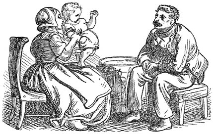’s Morgens vroeg kwam er een boer voorbij. Toen hij het eendje zag, ging hij er heen, trapte het ijs met zijn klomp aan stukken en bracht het dier naar zijn vrouw toe. Daar kwam het weer bij.