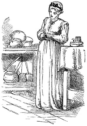 «Wat is er te doen?» zei de vrouw en keek in de rondte; maar zij had een slecht gezicht, en daarom dacht zij, dat het eendje een vette eend was, die verdwaald was geraakt. «Dat is een goede vangst!» zeide zij. «Nu kan ik eendeneieren krijgen. Als het maar geen woerd is! Dat zullen wij eens probeeren!»