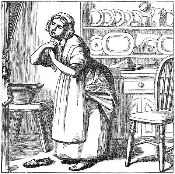Tegen den avond bereikte het een kleine, armoedige boerenhut; deze was zoo bouwvallig, dat zij zelf niet wist, naar welken kant zij zou vallen, en daarom bleef zij maar staan. De storm gierde zoo verschrikkelijk om het eendje heen, dat het moest gaan zitten, om niet omver te waaien. Nu bemerkte het, dat de deur uit het eene scharnier geraakt was en zoo scheef hing, dat het door de reet in de kamer kon sluipen, en dit deed het dan ook.