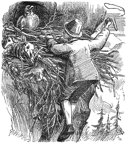 «Denk je, dat dit de heele wereld is?» zei de moeder. «Die strekt zich nog ver aan den anderen kant van het geboomte uit, tot aan den tuin van den pastoor; maar daar ben ik nog nooit geweest.—Je bent toch allemaal wel bij elkaar?» vervolgde zij en stond op. «Neen ik heb ze nog niet allemaal; het grootste ei ligt daar nog; hoe lang zal het nog wel duren, eer dat uitkomt? Nu begint het mij haast te vervelen!» en zij ging er weer op zitten.