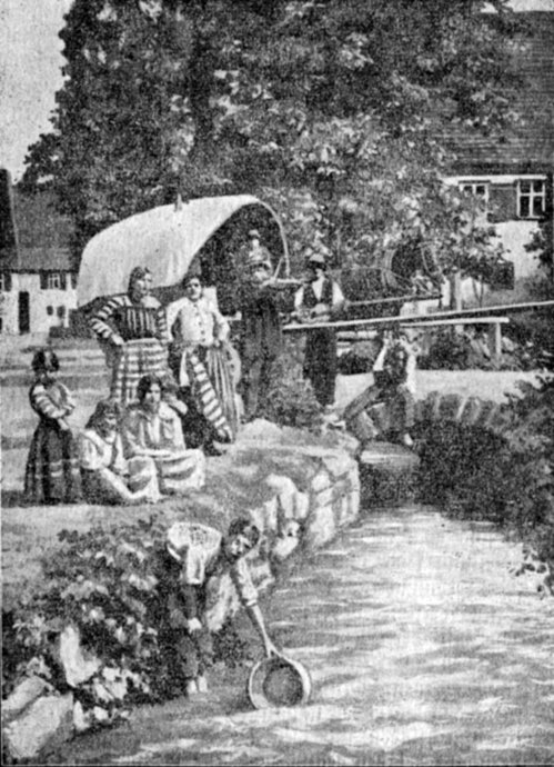 Heutzutage hat der Zigeuner, gegen früher, im Erwerb einen schweren Stand. In Deutschland wird ihm das, wodurch er noch sein bestes Fortkommen hatte und was seinen Befähigungen am besten entsprach, der Wander-Gewerbeschein, in den meisten Fällen versagt. Eine geordnete Arbeit bei dem herrschenden Vorurteil gegen ihn und der Arbeitslosigkeit unserer Tage, wo hunderte geübte, gelernte Menschen arbeitslos sind, für den Zigeuner zu bekommen, ist fast unmöglich, obwohl ja auch die Liebe zum Müßiggang, zur Bummelei, ein wenig mitspielt. Aber die deutschen Zigeuner sind keineswegs ein so müßiges, faules Volk, wie gewöhnlich kurzerhand [7]angenommen wird; man darf sie in dieser Beziehung nicht mit den Zigeunern anderer Länder vergleichen. Man beachte einmal das Leben und Treiben am Halteplatz des Wohnwagens und man wird sofort sehen, daß der deutsche Zigeuner nicht der Faulpelz ist, als den man ihn sich gemeinhin vorstellt.