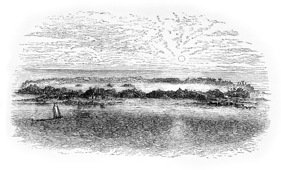 It was on the third of January, and the first faint daylight was stealing over the 20 waters, when one of the crew, looking eagerly round as he raised himself from uneasy sleep, saw far off a faint line which seemed to be land. The sun rose higher and colored rose-red the snow-hooded tops of lofty rocks around the unknown coast. All the hope and desire of the shipwrecked crew was now to reach this shore, fearing its unknown dangers but little, compared with the terrible suffering they had long endured.