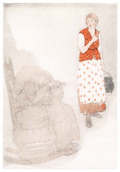 In the poorer houses there was a great stir and bustle and laying out of coats and dresses, for many were planning to go to the seashore to see the Princess offered up to the Stoorworm,—though a gruesome sight ’twould be to see. Ashipattle’s father and brothers were planning to go with the rest, but his mother and sister wept, and said they would not see it for anything in the world.