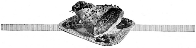 Cervelat: This sausage is made of finest pork chopped fine, smoked and air dried. It is highly spiced. A very delicious way to serve this is to cut thin slices of white bread in rounds just the size of the sausage. Put the meat, cut very thin, between the slices of bread and toast for a minute with a very hot fire. This keeps the exposed sides absolutely dry and the sandwich can be eaten without a fork.