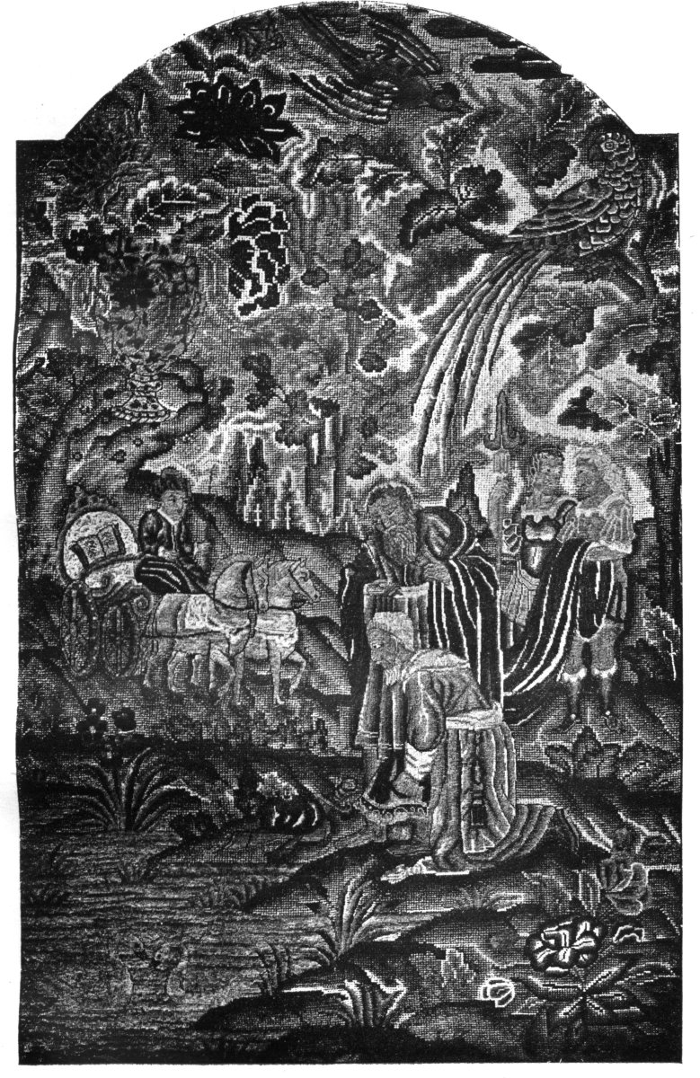 It cannot be too soon realised that, as with old furniture, porcelain, and silver, much of the finest embroideries of England, and a vast quantity of the ancient laces of Italy, France, and Belgium are being slowly but surely carried off to the New World. American dollars are doing much to rob not only the Old Country of the fairest flowers of her garden, but the Continent of their finest and best examples of the genius of the past. The Vanderbilts and the Astors, among others, possess immense fortunes in lace, whilst that omnivorous collector Mr. J. Pierpont Morgan gives fabulous sums for any fine old relic of embroidery. Many pieces of both classes of needlecraft have found a permanent home in the{9} Metropolitan Museum of New York, and are lost for ever to the English student.