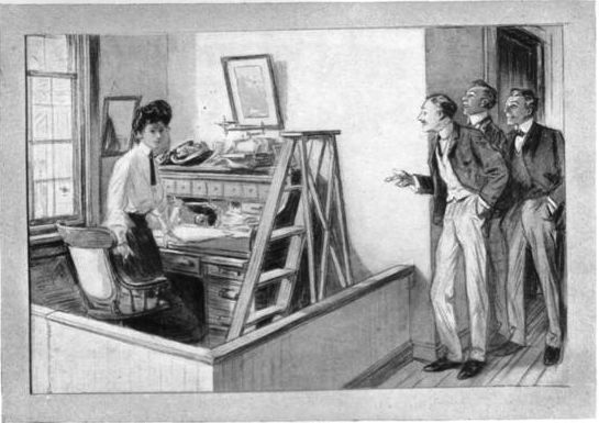 At first, say for six months after she came to the office, Miss Larrabee devoted herself to the accumulation of professional pride. This pride was as much a part of her life as her pompadour, which at that time was so high that she had to tiptoe to reach it. However she managed to keep it up was the wonder of the office. Finally, we all agreed that she must use chicken-fence. She denied this, but was inclined to be good-natured about it, and, as an office-joke, the boys used to leave a step-ladder by her desk so that she could climb up and see how her top-knot really looked. Nothing ruffled her spirits, and we soon quit teasing her and began to admire her work. In addition to filling six columns of the Saturday's paper with her society report in a town where a church social is important enough to justify publishing the names of those who wait on the tables, Miss Larrabee was a credit to the office.