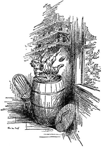 | With a crash a frightened little boy fell into the flour barrel. | 167 |