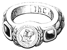 Antique rings:—Egyptian rings—Legend concerning the ring of Polycrates—Assyrian, Etruscan, and Greek rings—Roman rings— Inscriptions and devices—Key rings—Gaelic, Celtic, and Saxon rings. Mediæval rings:—Episcopal rings—Thumb rings—Religious rings—Charm rings—The crapaudine, or toad-stone—The “Kings of Cologne”—Mottoes, or “reasons”—“Tower” rings—Martin Luther’s wedding-ring. Modern rings:—Signet rings—Story connected with the ring of the Earl of Essex—Shakespere’s ring—“Gimmal” rings— Wedding-rings and their “poesies”—Poison rings—Modern versions of the Eastern tale of “The Fish and the Ring”—Memorial and relic rings—Death’s-head rings—“Giardinetti” rings—Indian and Moorish rings—“Harlequin-rings”—“Regard-rings”—“Fisherman’s ring” of the Pope 71-157