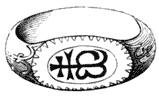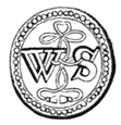 The quaint manner in which letters were sometimes braced together may be seen in Fig. 16. Occasionally, a name thus formed in monogram would require much ingenuity to unravel, inasmuch as the entire letters made but one interlaced and closely compacted group, each limb or portion of a letter helping also to form part of another. In the hospital founded at Edinburgh by the famous goldsmith, George Heriot,—the favourite goldsmith and jeweller of James I., a monarch who fully appreciated his art,[17]—the name of “Jingling Geordie,” as his majesty playfully called him, is sculptured in such a group, which appears at first sight an enigma few could unravel; indeed, without knowing what letters to look for, and how to arrange them, it is a chance if they would be arranged correctly. Such a mode of marking would, however, have its advantages, for it would enable those who were in the secret to unravel the mystery of the true proprietorship of any valuable article unfairly abstracted. The shields in Fig. 13 are filled with monograms less elaborate, but bearing a sufficient affinity to those alluded to, to aid in understanding the rest.