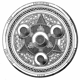 When the Dukes of Urbino, dazzled with the brilliancy of the Moorish potters, had determined to rival their workmanship in[12] manufactories upon their own principality, the so-called Raffaelle-ware soon afterwards fascinated the Italians, by the quaint design and beautiful colour of the dishes and vases there produced. Though popularly named after the great painter, it was unlikely that he had aught to do therewith; but his designs were occasionally adapted to its use by the workmen. The circular plateau (Fig. 12) is a good example of the bold character and vigour of effect occasionally produced in these works.
