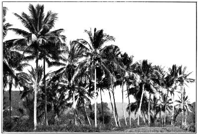 Although this palm can be grown for ornamental purposes as far south as Brisbane, its cultivation on commercial lines will be confined to the coast district north of Townsville, and to the islands off the coast, as, in order to develop its fruit to perfection, it requires a tropical climate. Where the climate is suitable it does well, it makes a rapid growth, and bears heavy crops of nuts. Old palms on the beach at Cairns compare favourably with any growing in the South Seas, and I am of opinion that its culture in commercial quantities on suitable land will be found profitable. The cocoa-nut palm does best right on or adjacent to the seashore, in comparatively poor sandy soil—soil that is usually of little value for general crops, though it will grow mangoes well. So far, it is not grown in any large numbers, and although there is a ready sale for the ripe nuts, there is no attempt to make copra or to utilise the coir. Copra is the dried flesh of the nut, from which oil is extracted, and is largely used in the manufacture of soap, candles, &c., the refuse left after the oil has been extracted being used for cattle feed. Coir is the fibre surrounding the nut, and is used for the manufacture of matting, door mats, &c.