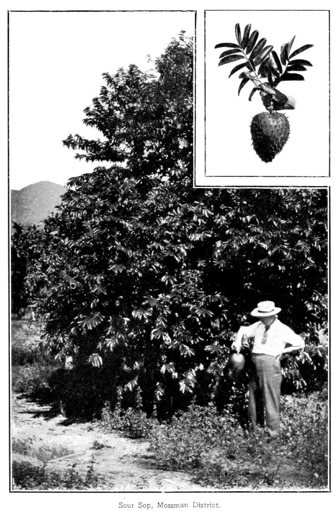 The sweet sop is the commonest of the Anonas, and is grown throughout a considerable part of coastal Queensland. It is usually of an irregular roundish shape, very full of seeds, which are surrounded by a custard-like pulp of very pleasant flavour. It is usually a heavy bearer, and is the variety most commonly met with in our fruit stores. The tree is hardy and is easily grown.