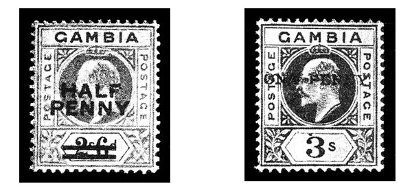 n collecting the stamps of Gambia one cannot too strongly emphasise the necessity for guarding the stamps of the "Cameo" series against deterioration by the pressure of the leaves in an ordinary unprotected album. In their pristine state with clear and bold embossing these stamps are of exceptional grace and beauty. Sunk mounts or other similar contrivances, and a liberal use of tissue paper, should be utilised by the collector who desires to retain his specimens in their original state. A neat strip of card affixed to each side of the page in an ordinary album will have the effect of keeping the pages above from flattening out the embossing, but tissue paper should be used as an additional safeguard.