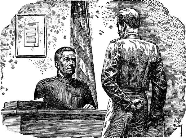 The O.D. stopped before the closed door, executed a mechanical right face, knocked the prescribed three times and opened the door smartly on the heels of the word "Come" that erupted from the inside. I stepped in followed by the O.D.