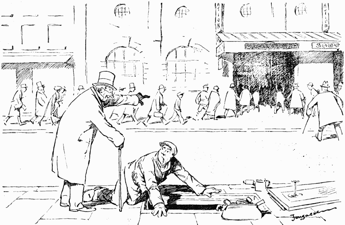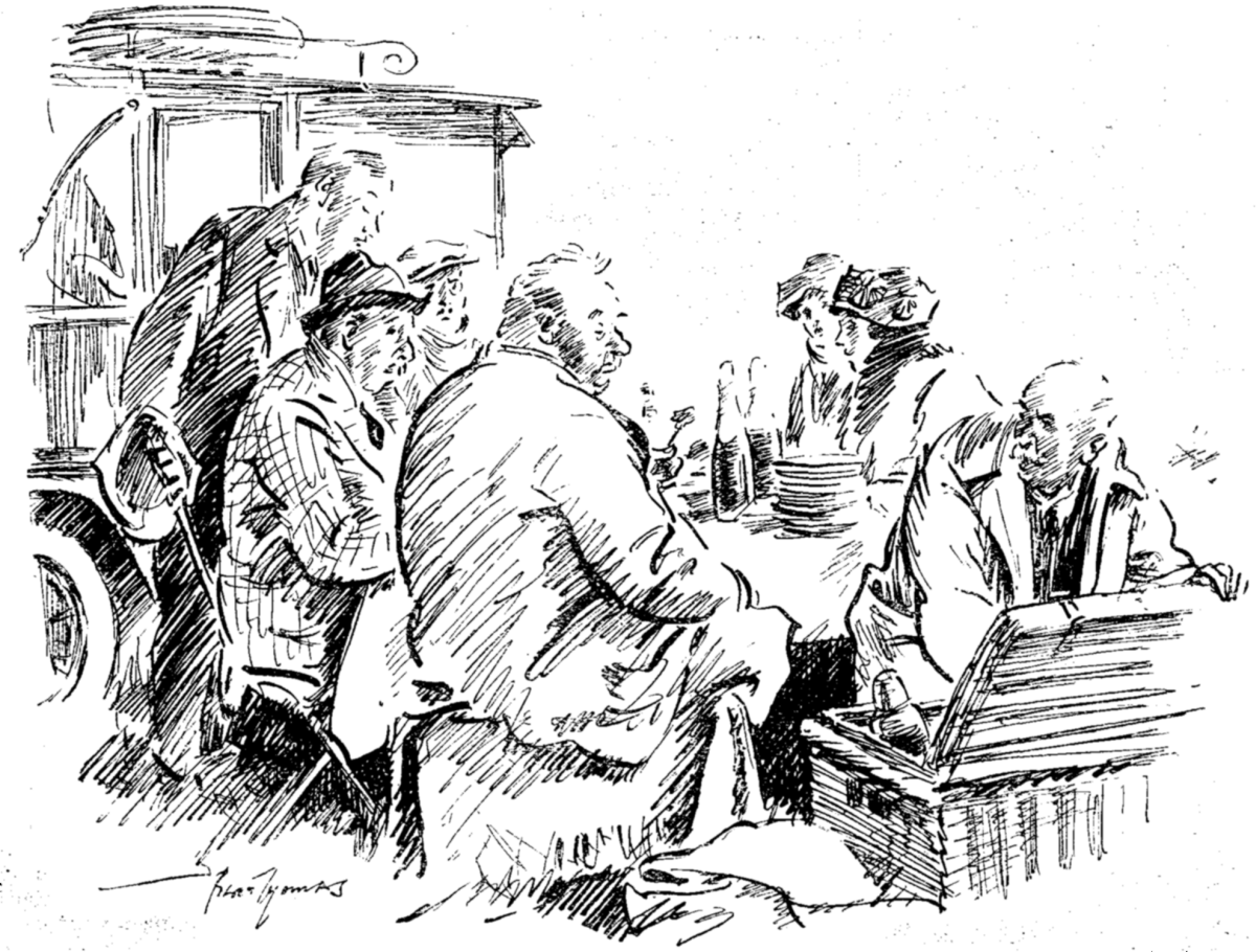 As we trudge homeward under the star-lit skies all our racy anecdotes are of the fine fast runs we have had with the 8.52, the brave swinging of the tail carriage, the heavy work over the points, the check and find again at East Croydon main.... Those who arrive early at the meet in the morning (but, as I have hinted, I am not one of these) stroll about the platform, I am told, talking of the rare old times when the 8.52 used to be the 8.51, pulling out their watches every now and then and saying to the station-master, "She's twenty-five seconds late," for all season ticket-holders have special permission from the railway company to put trains into the feminine gender. This is a slight compensation for having to pay again when they are challenged and can only pull out a complimentary pass to the Chrysanthemum Show.