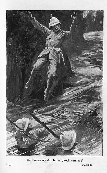 “Not uppards? Why, it’s been sich a gettin’ upstairs ever since we started this morning. Don’t you be so jolly ready to kick again’ your orficers. Mr Bracy’s a reg’lar good sort; and if we comes to a set-to with the niggers he’ll let some of yer see. I say, though, think we shall have a row?”