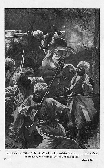 “Certainly not,” replied the latter gravely. “They are decidedly a brave, bold, fighting race. Tall, dark, big-bearded, just such fellows as hill-tribes are; restless, pugnacious fighting-men, always engaged in petty warfare with the neighbouring chiefs, and making plundering expeditions.”