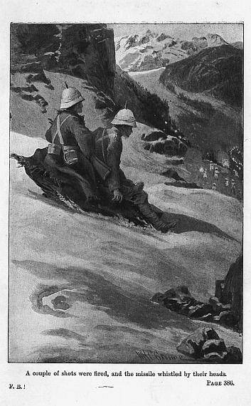 “Well, Colonel,” said Dr Morton as the officers sat enjoying their lunch, breathing in the crisp mountain air and feasting their eyes at the same time upon the grand mountain scenery, “I must confess to being a bit lazy. You may be all athirst for glory, but after our ride this morning pale ale’s good enough for me. I’m not a fighting man, and I hope when we get to the station we shall find that the what you may call ’em—Dwats—have dissolved into thin air like the cloud yonder fading away on that snow-peak. If, however, it does come to a set-to, here I am, my dear boys, at your service, and I’ll do the best I can.”