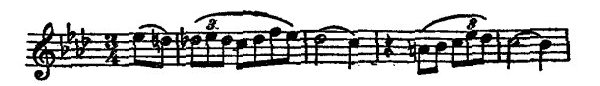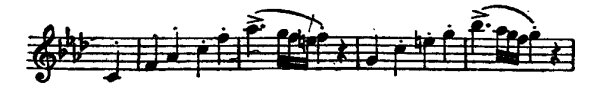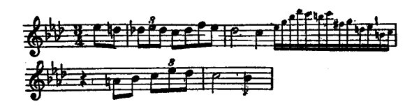 The nature of the keyboard of the piano, and the ease with which certain things are accomplished, make it possible for the performer to make certain errors which the construction of other instruments would prevent. The pianist is, for instance, entirely unlike the violinist, who has to locate his keyboard every time he takes up his instrument, and, more[287]over, locate it by a highly trained sense of position. In a certain way I sometimes feel somewhat ashamed for the pianist profession when I hear players, even those with manifest technical proficiency, commit flagrant mistakes against elementary rules of accentuation and phrasing, such as, for instance, an average violinist acquainted with good bowing is accordingly prevented from making upon his instrument.