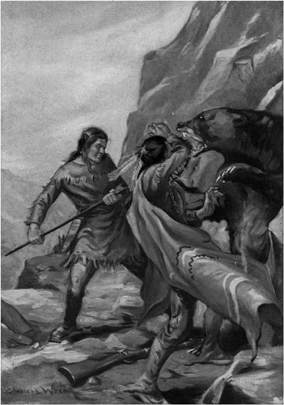 | A stroke of a great paw and the rifle was dashed from the hands of the old chief | Frontispiece |