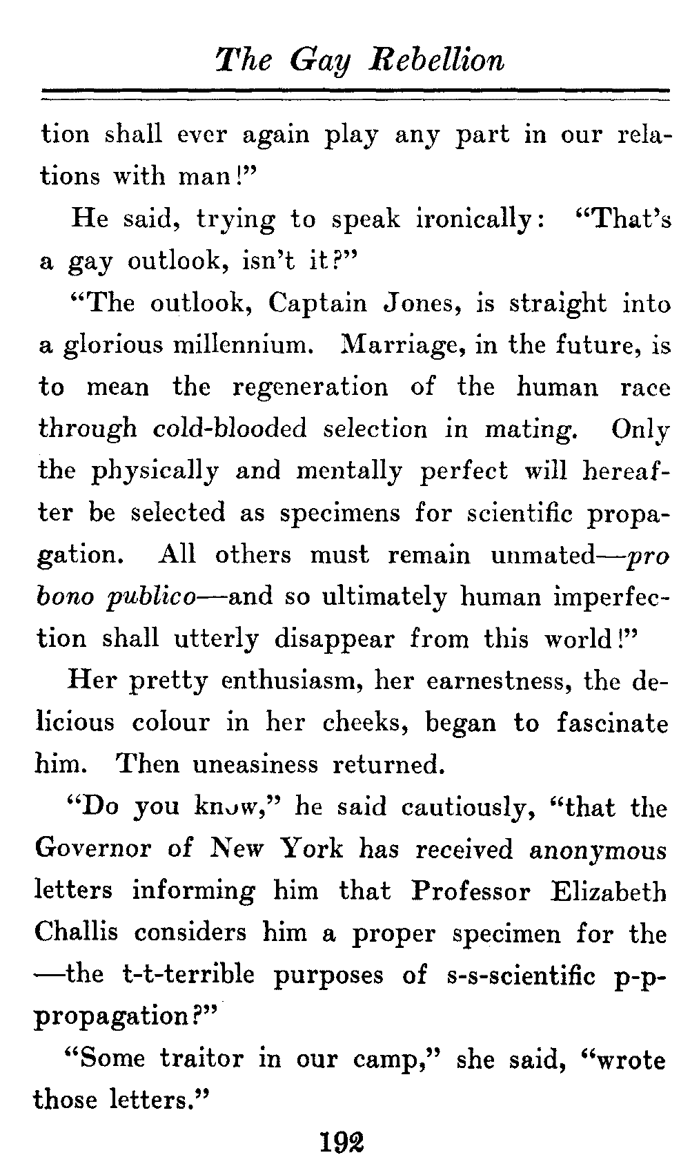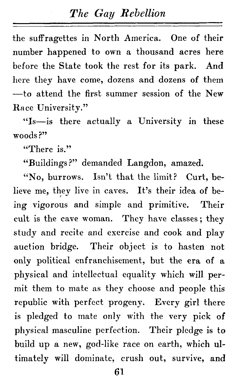 But the Central Federation of Amalgamated Females was to deliver a more deadly blow at man than any yet attempted, a blow that for cruelty and audacity remains unparalleled in the annals of that restless sex.