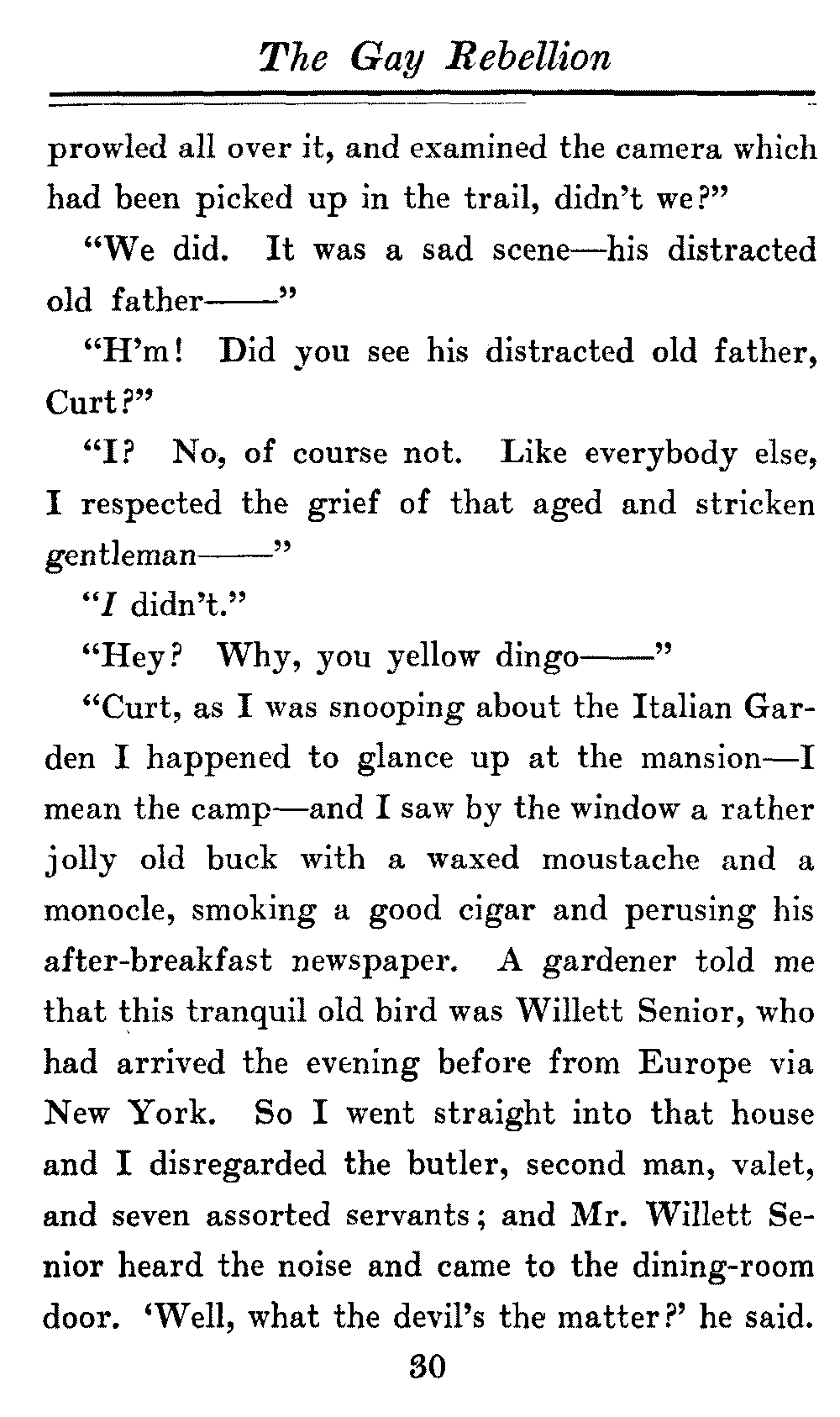 [5] "Mr. Trinkle," he began more complacently, "what I want you to always bear in mind is that my pup nephews require a thorough grilling! I want you to bully 'em! Suppress 'em! Squelch, nag, worry, sit on 'em!"