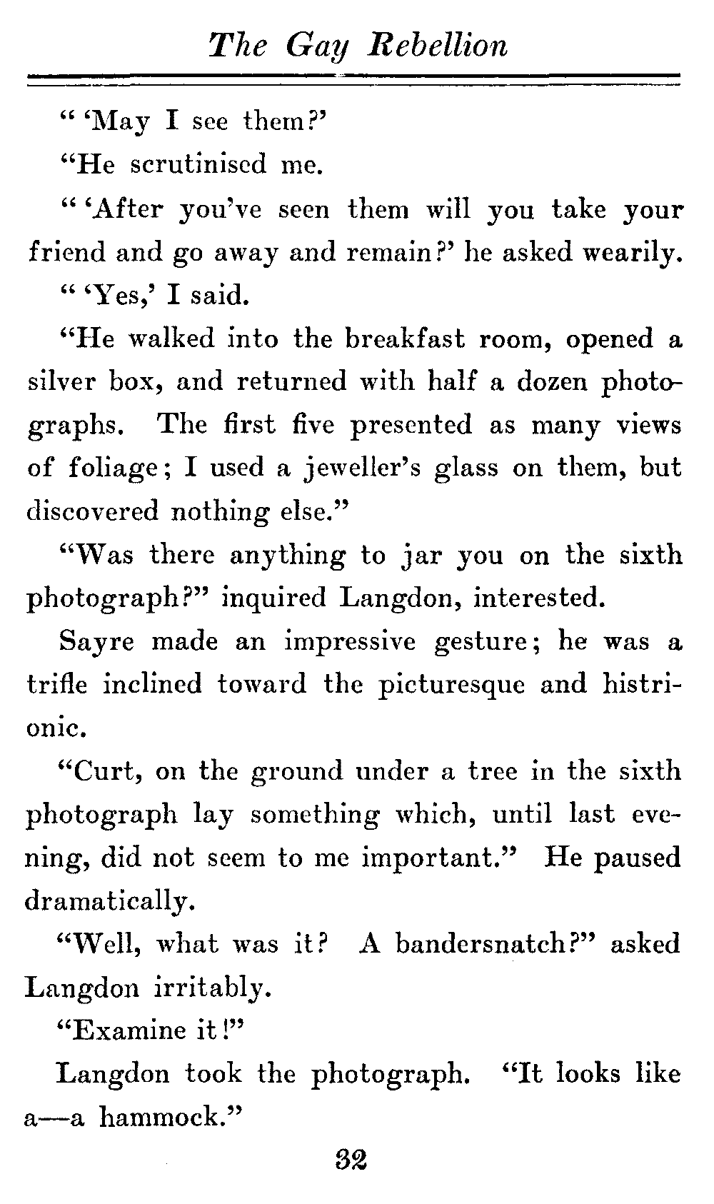 "Because those verses were too devilish good to lose. You must have read them. It was that poem Amourette."