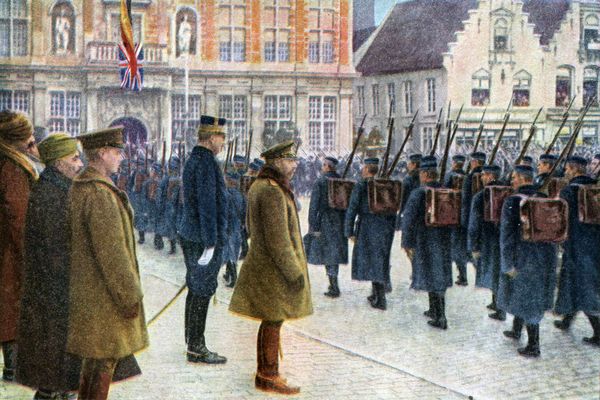 Next to the Belgians was a French army, and next to them the British army, which shared with the French the brunt of the attack in that sector around the old town of Ypres, which was to give its name to the Ypres salient, the bloodiest region of this war, and of any war in the history of Europe.