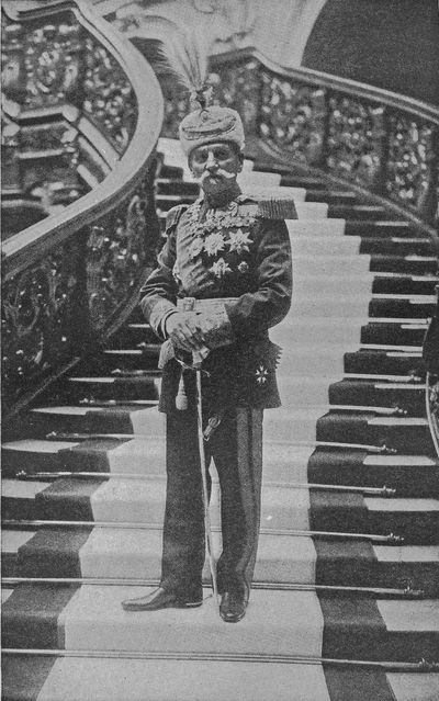 King George V of Britain and King Albert of Belgium inspecting Belgian troops. The youth is the Prince of Wales, and beside him is Major General Pertab Singh of the Indian army.