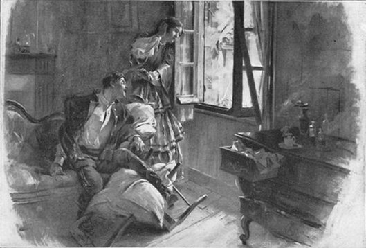 Officers of the Third Hussars were continually tramping up and down the muddy stairway, laughing, joking, swearing at the rain, or shouting for their horses, when the trumpets sounded in the street below.