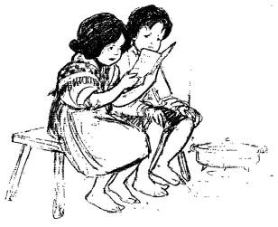 She ran to the chair and picked up the letter. The Twins sat down on a little bench by the fireplace, and Grannie Malone put the letter in their hands.