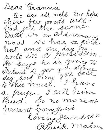 “’Tis from my grandson, young Patrick,