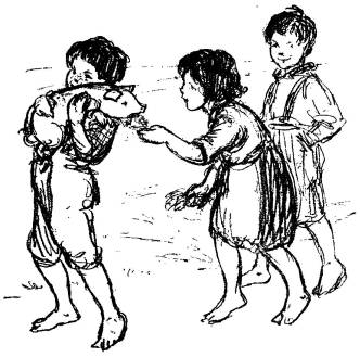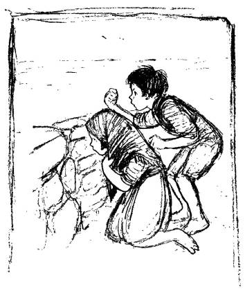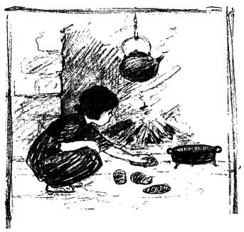 Larry took the kettle to the well for more water. He slopped a good deal of it as he came back. It made great spots of mud, for there was no wooden floor—only hard earth with flat stones set in it.