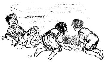 Just that minute Larry came up behind the hen and tried to catch her by the legs.